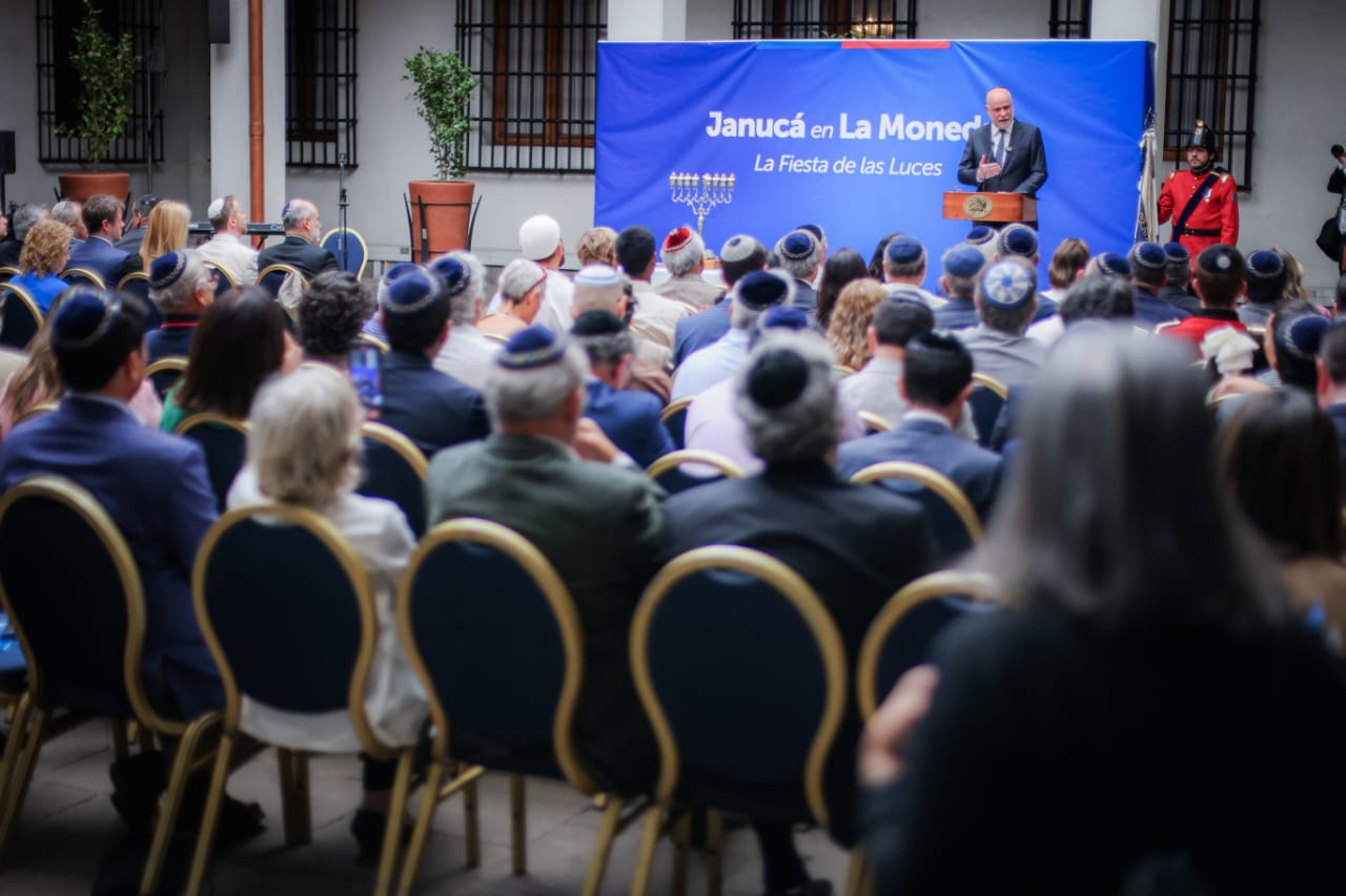 “Celebrar Janucá en el Palacio de La Moneda no es solo un acto simbólico, es también una expresión concreta del carácter laico del Estado chileno. Este año, además, esa reflexión adquiere un valor especial. Se cumplen cien años desde la separación entre la Iglesia y el Estado, consagrada en 1925. Cien años de un principio que no implica indiferencia frente a la fe, sino todo lo contrario, un compromiso activo del Estado con la libertad religiosa, con el libre ejercicio de la espiritualidad y con la protección de todas las creencias frente a cualquier forma de discriminación y amenaza”, dijo el titular de Interior.