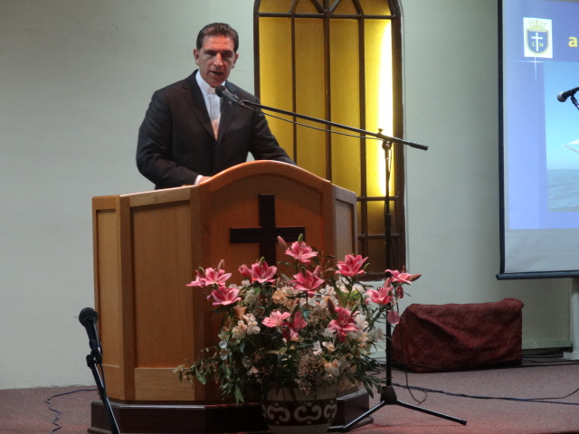 La oración por Chile y el mes del mar fue realizada por el Obispo de la Catedral Evangélica, Eduardo Durán Castro quién agradeció primeramente la invitación al servicio y remarcó lo impecable de la jornada. Sus palabras fueron guiadas al bien estar de cada uno de los marinos y funcionarios que componen la Institución y luego se sumó al reconocimiento realizado al Almirante Gonzalez Robles, por su siempre colaboradora función desde la Armada de Chile para con los evangélicos.