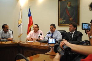 El Alcalde de Chillán, Sergio Zarzar, y el Concejal Víctor Sepúlveda, junto al Jefe de la División de Relaciones Políticas del Ministerio Secretaría General de la Presidencia, Claudio Rabanich, y al Director Regional Bio Bio del INJUV, Rodrigo Sandoval, hicieron el anuncio ante la prensa, en la Sala de Concejo de la Municipalidad.