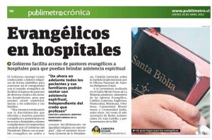 Desde este lunes 11 de junio de 2012 , en horario establecido desde las 9:00 a 14:00 y de 15: 00 a 18:00 horas, comienza la toma de datos, para la obtención de la credencial para a Ministros de Culto , llamada Sistema de Acredetación Nacional para Ministros de Culto (SNAM). Esta credencial, les permitirá acceder libremente a todos los hospitales de la red pública de salud, para prestar asistencia a esperitual a los enfermos que la requieran.
