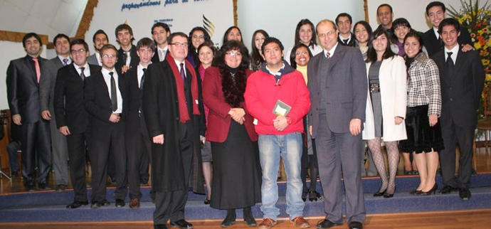 Jeremías Medina Martínez visitó la Universidad Adventista de Chile, Campus Chillán, donde se reunió con los directores de ministerios musicales de esa denominación. En la foto, junto al presidente nacional de la Iglesia Adventista de Chile.
