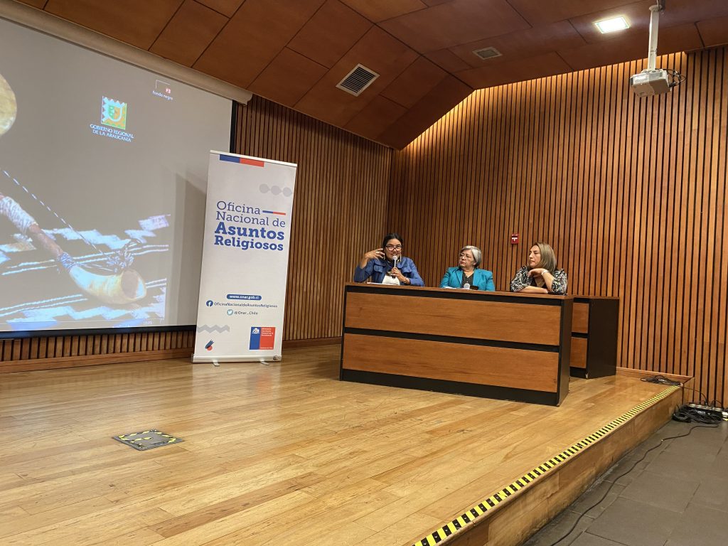 El encuentro permitió el intercambio de experiencias a través de una mesa compuesta por mujeres provenientes de espacios religiosos, desde el sector académico, pastoral y comunitario; Dra. Sandra Arenas, Decana de la Facultad de Ciencias Religiosas y Filosofía de la Universidad Católica de Temuco, Dra. Raquel Riquelme, doctora en ciencias de la religión, Universidad Metodista de Sâo Paulo y Angélica Carrasco Lideresa comunitaria representante de la Olla Común – Sector Pedro de Valdivia, Temuco, con quienes se dialogó respecto a las barreras sociales y culturales que enfrentan en espacios como éstos y las potencialidades como mujeres para seguir desarrollando sus trabajos.