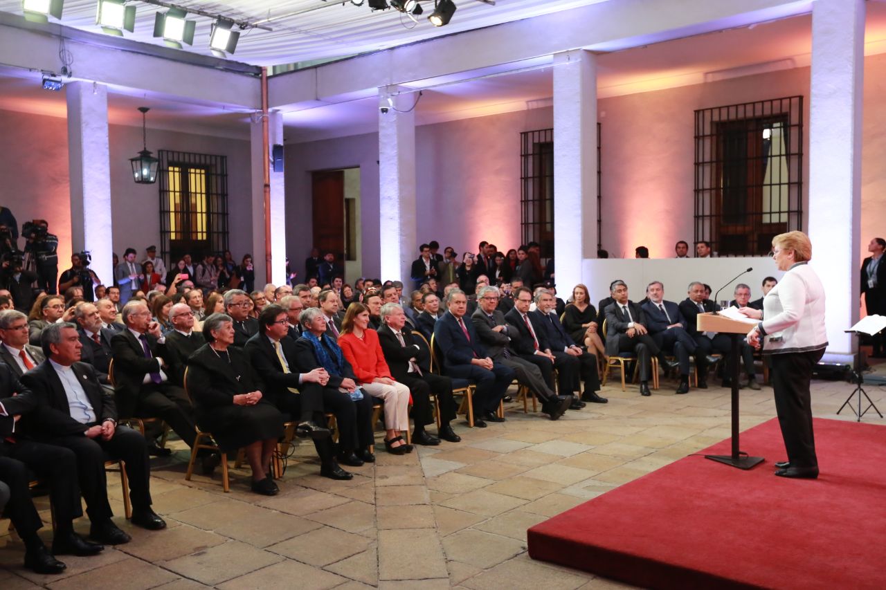 La Jefa de Estado expresó que el legado del protestantismo en nuestro país ha ido ganándose un espacio desde los albores de nuestra vida republicana, a través de hitos que son parte de nuestra historia, como la creación del Cementerio Disidente en el cerro Panteón de Valparaíso y la del Patio de los Disidentes en lo que hoy es el Cementerio General de Santiago, en 1854. Asimismo, con la dictación de las leyes laicas, la separación iglesia-Estado en la Constitución de 1925 o la Ley de Culto de 1999.