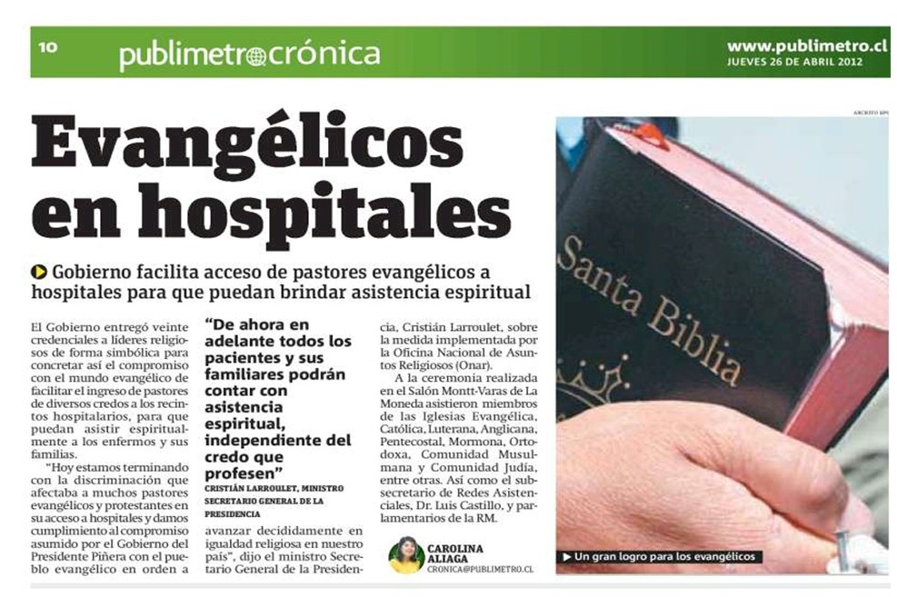 El ministro Larroulet señaló que “hoy estamos terminando con la discriminación que afectaba a muchos pastores evangélicos y protestantes en su acceso a hospitales y damos cumplimiento al compromiso asumido por el Gobierno del Presidente Piñera con el pueblo evangélico en orden a avanzar decididamente en igualdad religiosa en nuestro país”.