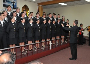 El culto realizado en la Iglesia Asambleas de Dios de Valparaíso estuvo marcado por los himnos entonados por los grumetes de la banda instrumental de Marina y el mensaje bíblico quedó a cargo del capellán Nacional Evangélico René Ojeda, quien hizo hincapié en la importancia de la iglesia evangélica dentro de la Armada, explicando que son muchos los fieles que en ese lugar profesan esta fe. Añadió además que “cada día era importante que fuésemos como Dios, en obediencia y apego”. Argumentando además “Dios siempre nos sorprende, hoy por ejemplo el Almirante me comentó lo gratamente impresionado que estaba con lo maravillosos que son los cantos de estos marinos”, “él no se imaginaba que entre estos chicos existen talentos tan grandes y que además ellos los entregaban a la Dios como un regale de fe”.