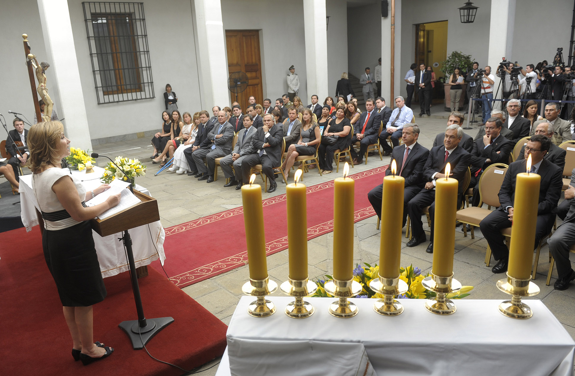 El Presidente de la República, Sebastián Piñera, acompañado de la Primera Dama, Cecilia Morel, participó esta tarde en el Palacio de La Moneda, en el acto ecuménico en memoria de las víctimas del terremoto y tsunami del 27 de febrero de 2010.