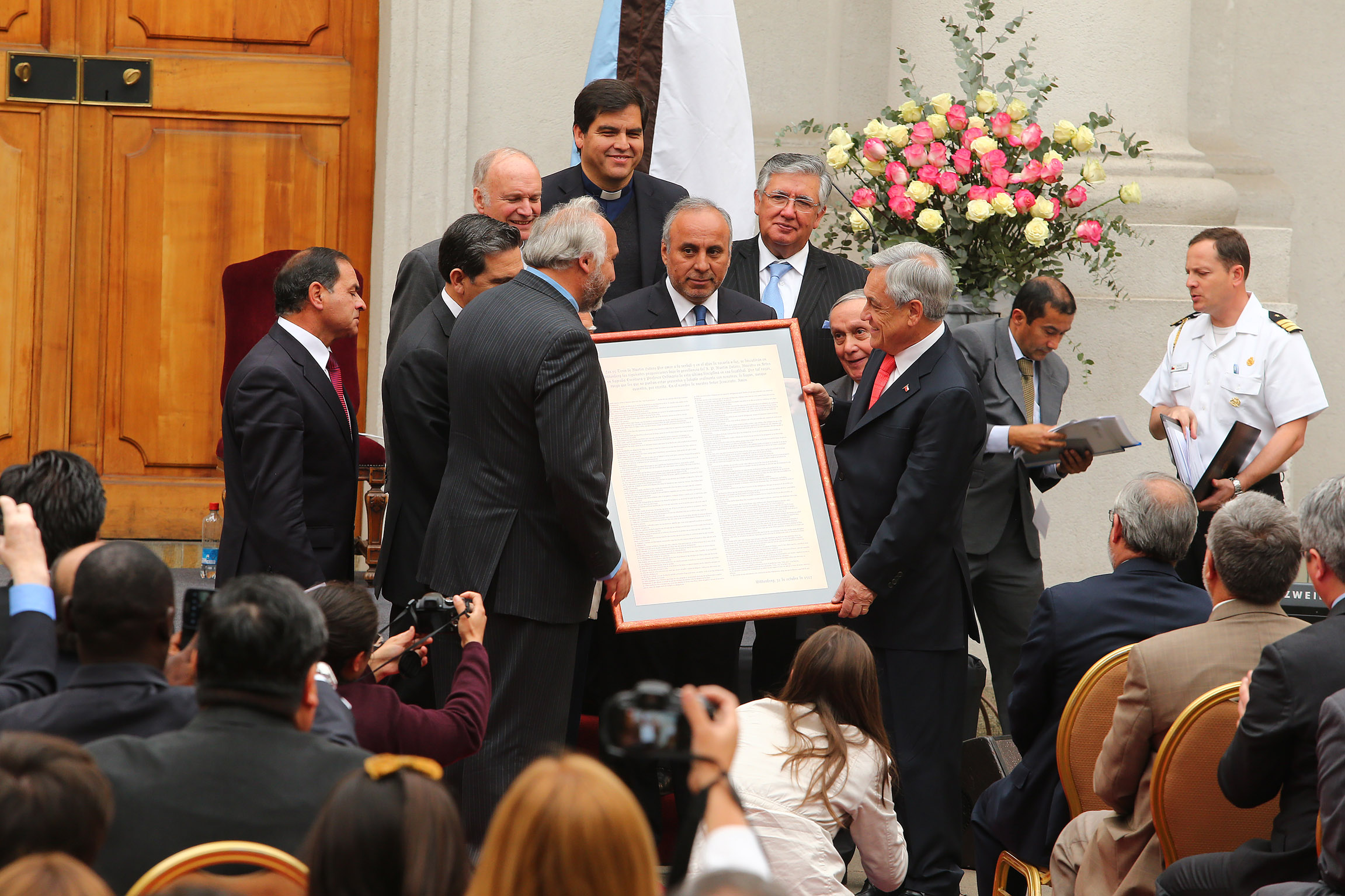 El secretario de Estado participó en la ceremonia que se efectuó en el Patio de los Cañones, del Palacio de La Moneda, la que fue encabezada por el Presidente Sebastián Piñera y contó con la presencia de ministros de Estado, subsecretarios, funcionarios de gobierno y representantes del mundo evangélico.
