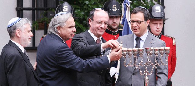 El Ministro Secretario General de la Presidencia, Cristián Larroulet, junto al Presidente de la Comunidad Judía en Chile, Shai Agosin, encabezó hoy la celebración de la Festividad Judía de Janucá, en el Palacio de La Moneda.