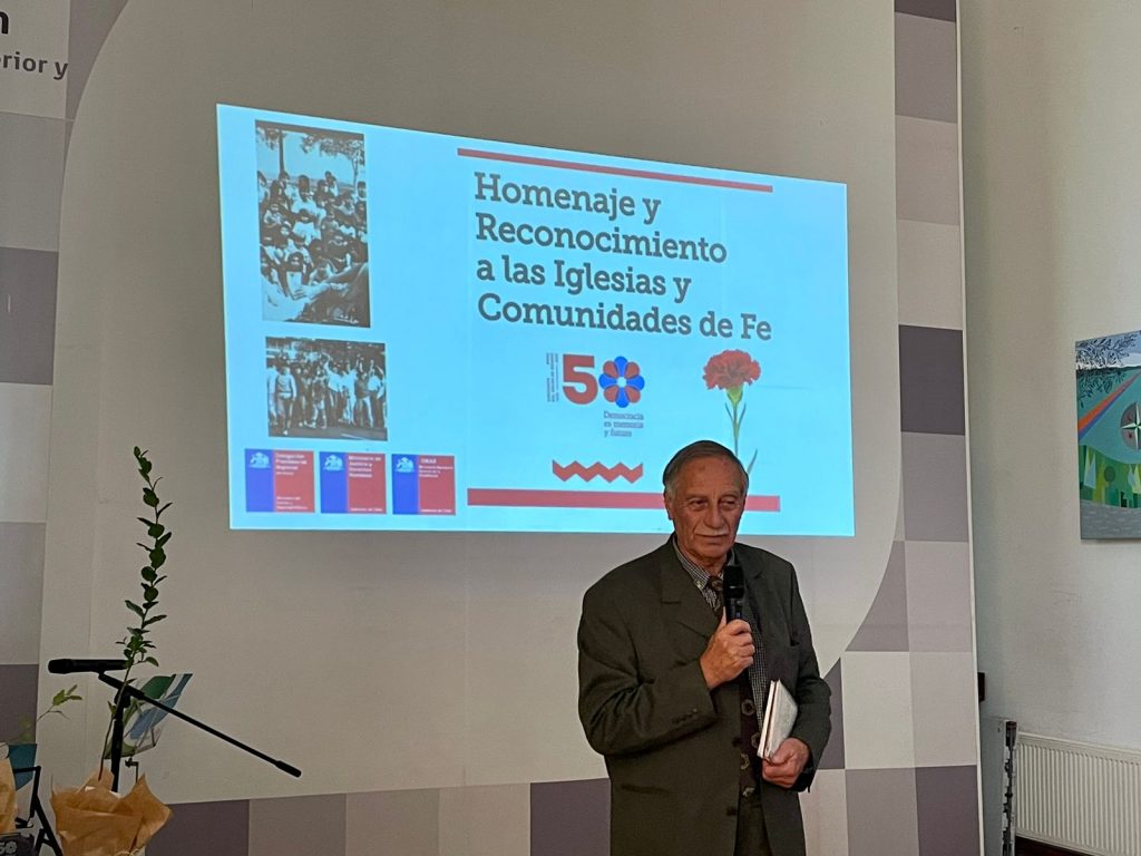 En una emotiva ceremonia en el Salón BíoBío, contamos con la presencia de la Srta. Daniela Dresden Delgada Presidencial, el Sr. Xavier Altamirano, Subsecretario de Derechos Humanos, el Sr Álvaro Ortiz, Alcalde de Concepción, Seremis y autoridades eclesiales católicas y evangélicas convocadas, se realizó ACTO DE RECONOCIMIENTO DE LAS INSTITUCIONES BASADAS EN LA FE QUE ESTUVIERON ACTIVAS EN TIEMPOS DE DICTADURA.
