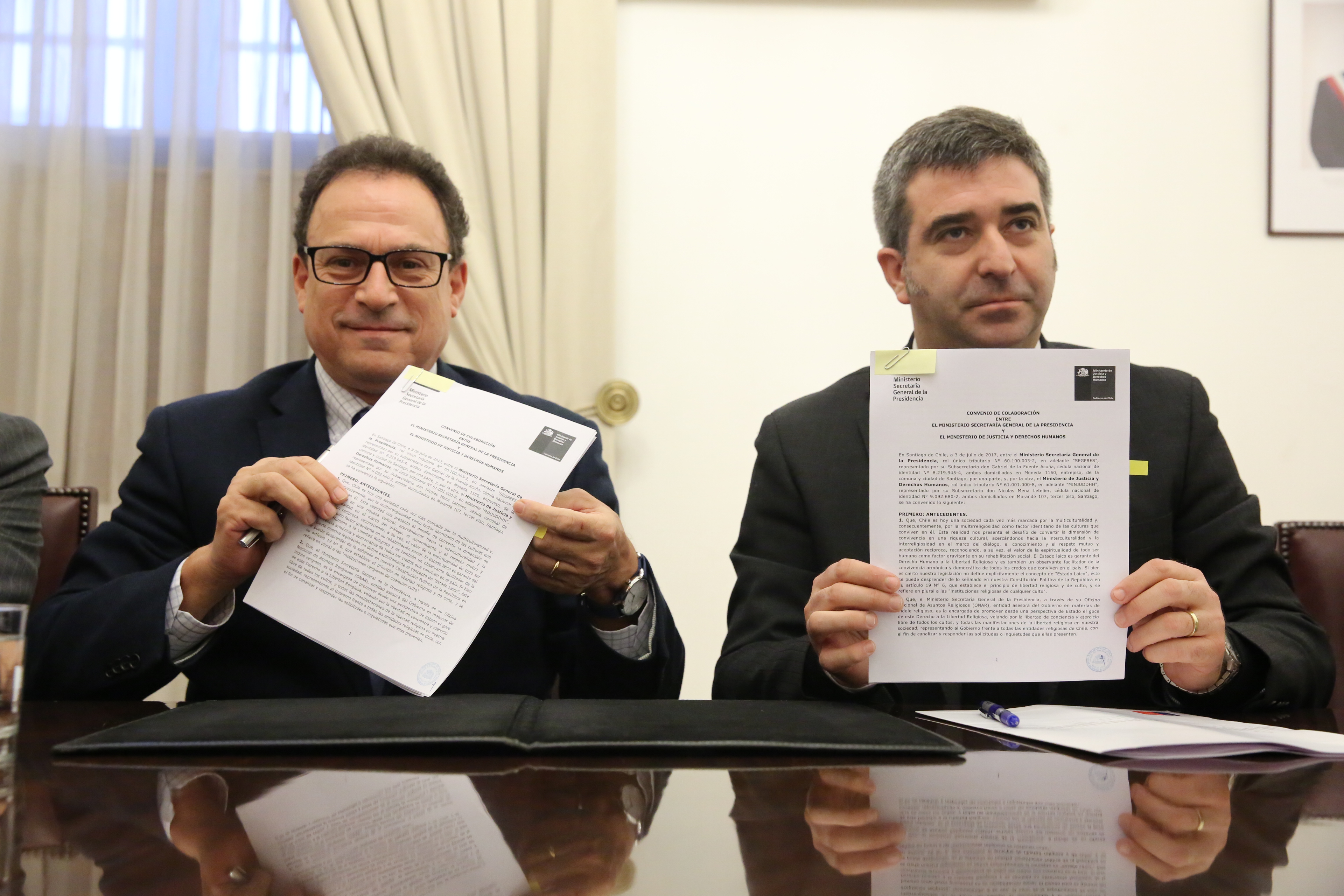 Con la finalidad de promover el respeto multicultural y religioso en los servicios públicos que dependen del Ministerio de Justicia, el subsecretario del Ministerio secretaría general de la Presidencia, Gabriel de la Fuente y su par de Justicia, Nicolás Mena, suscribieron un convenio de colaboración fundado en un documento elaborado por el Consejo Asesor de la Oficina Nacional de Asuntos Religiosos (ONAR), titulado “Código de Ética Interreligioso para el Diálogo en la Convivencia Democrática”