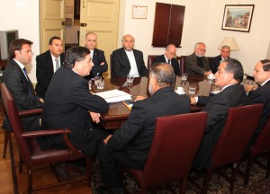 En la foto, de izquierda a derecha: Subsecretario General de la Presidencia Claudio Alvarado, Obispo Jorge Mendez, Obispo Roberto Lopez, Pastor Francisco Rivera,Obispo Emiliano Soto, Pastor José Lema, Obispo Eduardo Durán, Pastor Siegfried Sanders, Pastor Manuel Covarrubias, Pastor Pablo Alvarez, Capellán Anibal Jimenez, Capellán David Muñoz y Claudio Radonich, Jefe de la División de Relaciones Políticas e Institucionales del Ministerio Secretaría General de la Presidencia.